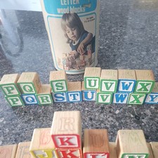 41 Vtg Children’s Wooden Building Blocks Educational Letters & Numbers