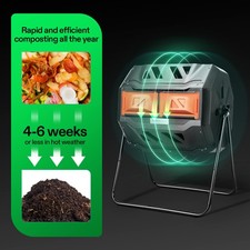 43 Gal Composting Tumbler Bin Dual Outdoor 360° Rotating Dual Chamber