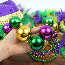 46” Mardi Gras New Year Jumbo Ball Bead Necklaces and 33” 7Mm Assorted Metallic
