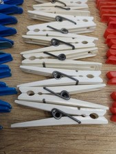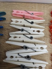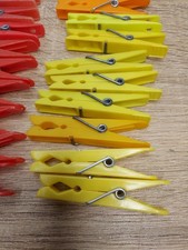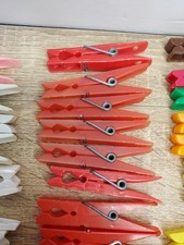 47 Vtg Plastic Clothespins Laundry Clips Blue White Red Yellow Spring