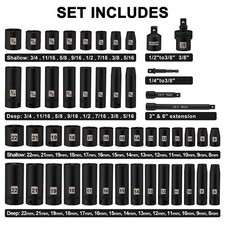 49 PCS 3/8″ Drive Impact Socket Set 6-Point Standard SAE & Metric Sockets