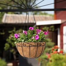 4PK Garden Flower Pot Plant Hanger Coco Coir Liner Metal Hanging Planter Basket