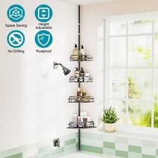 4Tier Corner Shower Caddy Tension Pole Carbon Steel Bathroom Organizer Rustproof