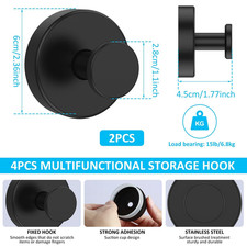 4× Suction Cup Hooks Waterproof Shower Hooks Bathroom Towel Hanger Punch-Free US