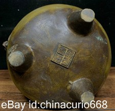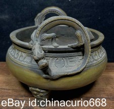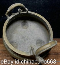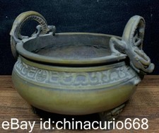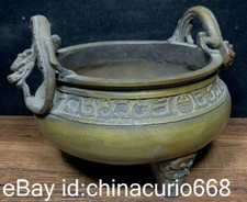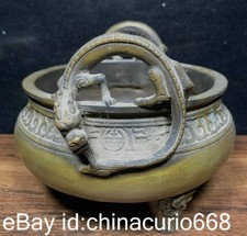 5.6″ Marked Old China Copper Dynasty Palace 2 Dragon Ear incense burner Censer