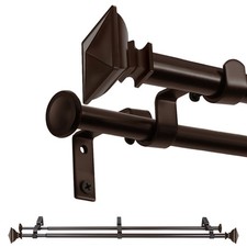 5/8″ Square Urn Adjustable Double Drapery Curtain Rod, 28”-48“/ 48”-84“/84”-120”