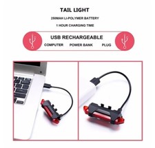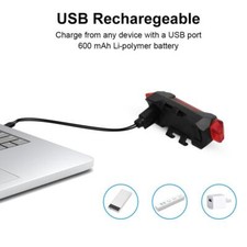 5 LED USB Rechargeable Bike Tail Light Bicycle Safety Cycling Warning Rear Lamp