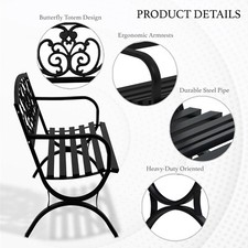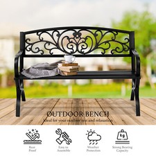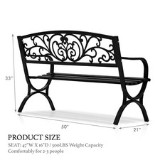 50″ Outdoor Patio Seat Garden Bench Cast Iron Porch Park Lawn Yard Black Floral