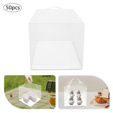 50 Pcs Clear Cake Boxes, Square Clear Cake Boxes, Cake Carrier with Handle