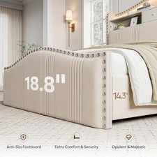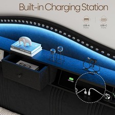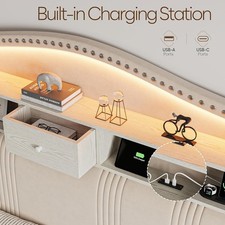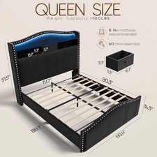 51.5″ Queen Size Bed Frame with Tall Headboard and Storage |