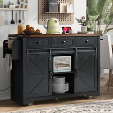 53.7″ Farmhouse Kitchen Island Rolling Kitchen Cart on Wheels with Power Outlet