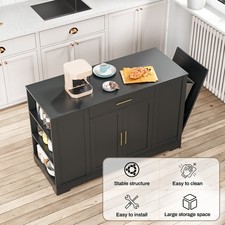 53 inch Kitchen Island Wood Storage Cabinet Tilt-out Trash Can Island Table Blue