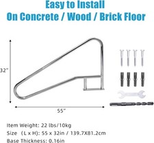 55″x32″ Swimming Pool Handrail 385LBS 304 Stainless Steel Non-Slip Pool Railings