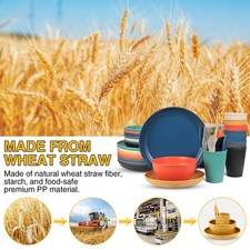 56 Piece Wheat Straw Dinnerware Sets,Unbreakable Reusable Dinnerware Set,Dish…