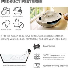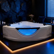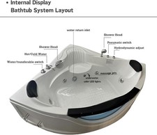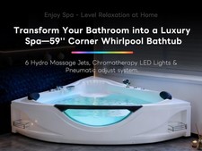 59″ 2-Person Corner Whirlpool tub w/6 Hydro Jets, LED Lights, UL Certified Pump