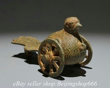 6.6″ Old Chinese Shang Bronze Ware Dynasty Palace Bird Car Statue