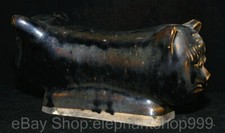 6.8″ Old Chinese Song Dynasty Ru Kiln Porcelain Tiger Beast Head Pillow Statue
