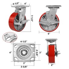 6” Caster Wheels, Heavy Duty Casters with Polyurethane Wheel, Industrial Cas…