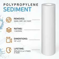 6 Pack Sediment 1 Micron Water Filter Cartridges 2.5″ x 10″ for Reverse Osmosis