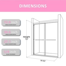 60″ x 72″ Bathroom Doors Brushed Nickel Shower Doors Glass Sliding 60 Inches