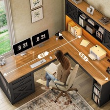 Be the first to review “67″ Farmhouse L Shaped Desk w/Hutch&3 Drawers, Corner Computer Desk w/LED Lights” Cancel reply