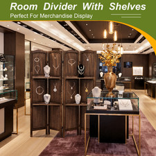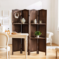 67″ H Wood Room Dividers 4 Panel Pegboard Display Folding Privacy Screens Brown