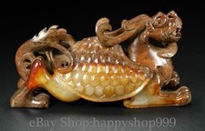 7.2″ Chinese Natural Hetian Old Jade Carving Dragon Tortoise Turtle statue