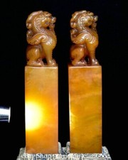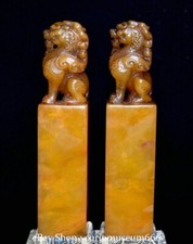 7.2” Old Chinese Tianhuang Shoushan Stone Carving Foo dog lion Seal Stamp