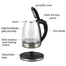 7.5-Cup Glass and Stainless Steel Electric Kettle with 7-LED Lights