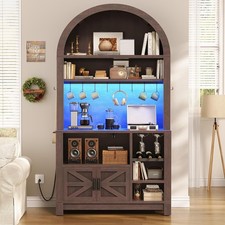 73″ Tall Arched Bakers Rack with LED Lights, Farmhouse Kitchen Microwave Stand