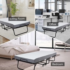 75″ x 31″ Rollaway Bed with Mattress, Foldable Bed with 5″ Memory Foam Mattress