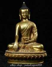 8.8″ Chinese Buddhism Copper Gilt Sit Lotus Amitayus auspicious Buddha Statue