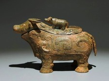 8.8″ Old Chinese Bronze Ware Dynasty Wine vessel Cattle Beast Zun Statue