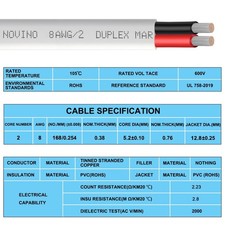 8 Gauge Marine Wire 8 AWG 20ft Duplex Marine Grade Wire Tinned Copper Heavy D…