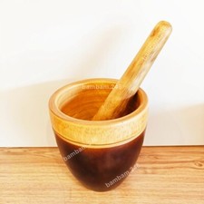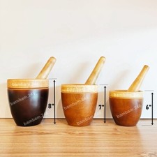8″ Wooden Mortar & Pestle Thai Kitchen Cooking Tool Papaya Salad Som Tum Nam Pri