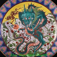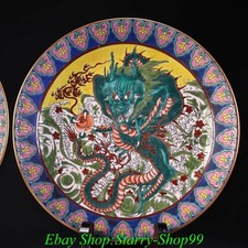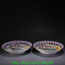 8″ YongZheng Marked Colour Enamel Porcelain Dragon Pattern Plate Dish Tray Pair