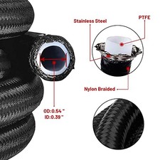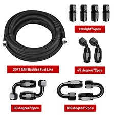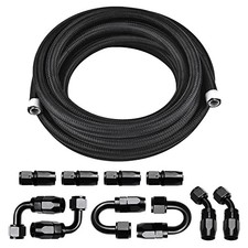 8AN 20FT PTFE Fuel Line Hose Kit, E85 Stainless 8AN Fitting+20Ft Hose Black