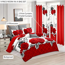 9 pieces bedspread bedding set with mathing curtains Queen King Cal King Size