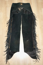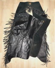 90’s Vintage CUSTOM CRAFTED Black Suede & Leather Fringed Riding Chaps S/M USA