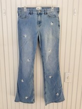 Abercrombie Kids High Rise Flare Jeans 17/18 Embroidered Flowers Boho Hippie