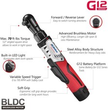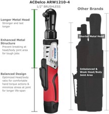 ACDelco Cordless BRUSHLESS 12V Ratchet Wrench (1/2‘’) Tool Kit, 2 Batteries