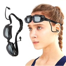 Adult Swim Goggles Adjustable Waterproof Anti-Fog UV Swimming Glasses + Ear Plug