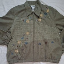 Alfred Dunner Wome’s Green Bomber Jacket with Utilitarian Design Size 12p