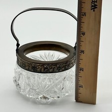 American Cut Glass Crystal Sugar with Metal Handle