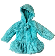 American Widgeon Girls Hooded Faux Fur Soft Plush Winter Jacket Turquoise -Sz 3T