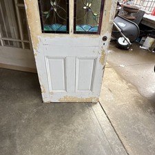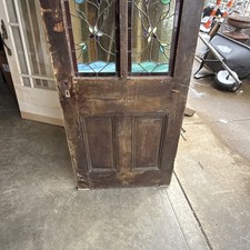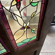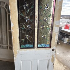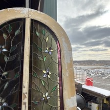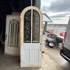 AN777 gorgeous antique arch top Stained Glass door 32 x 89.5 x 1.5