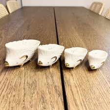 Anthropologie Ceramic Hedgehog Measuring Cups Cottagecore Gold White Set of 4