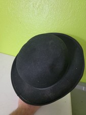 ANTIQUE 1900’S Adult BLACK FELT BOWLER DERBY HAT 7-1/4 100% Wool MFR 6811 XL