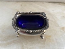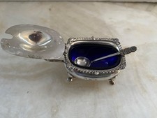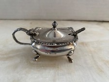 Antique 1913 Sterling Silver Mustard Pot & Salt Cellar Set Birmingham D Saunders