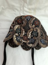 Antique 1920s flapper skull cap beads sequins France scalloped tassels RARE OLD